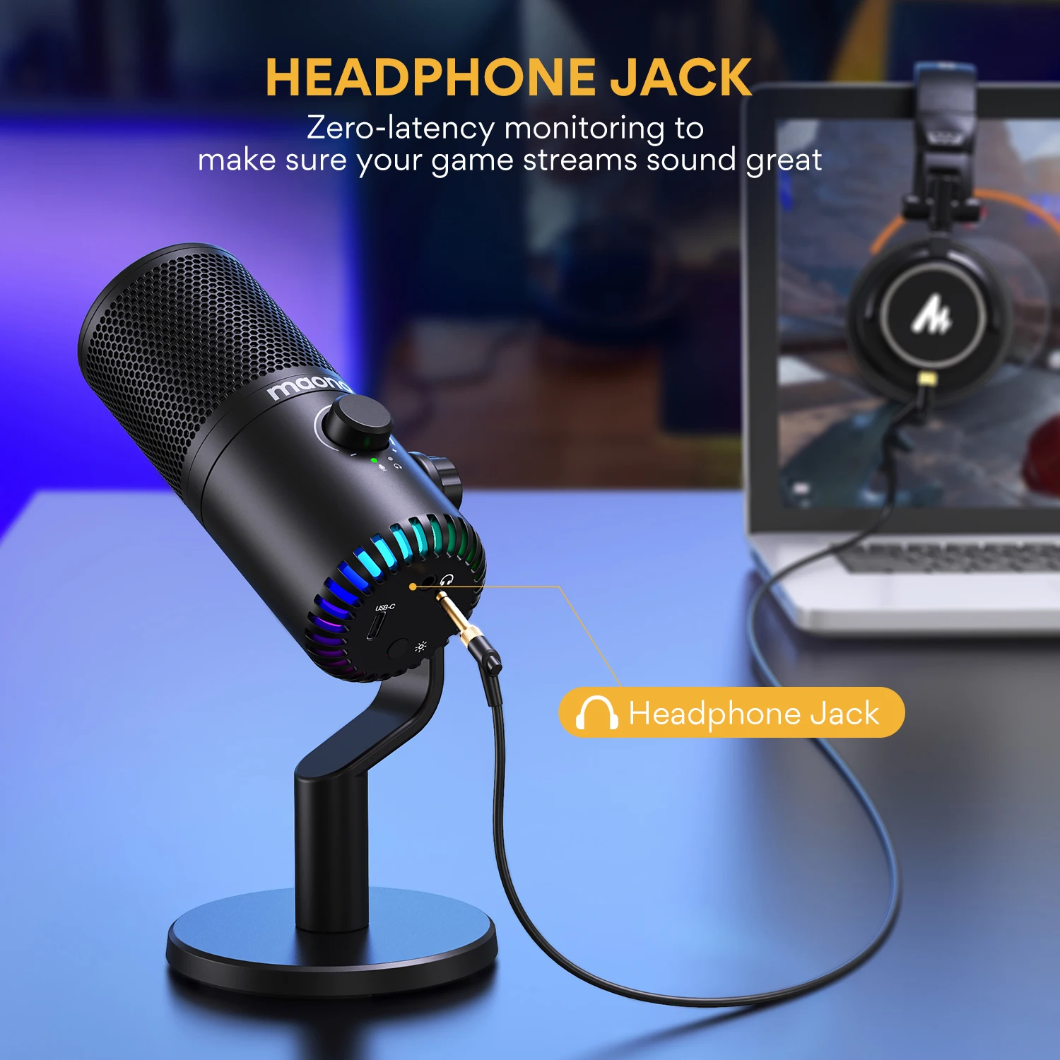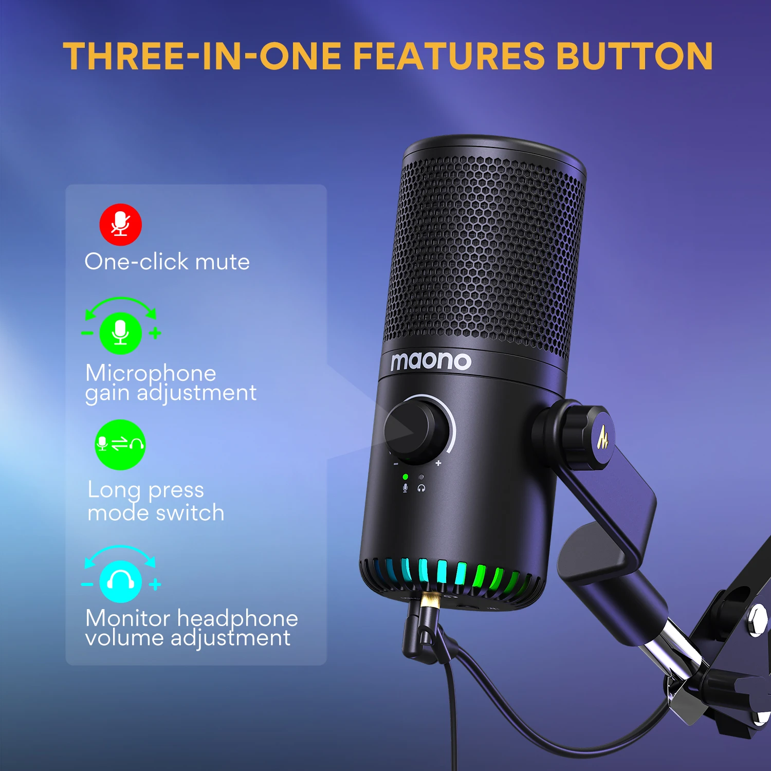 - Cardioid Condenser Mic with All Metal and Gain knob