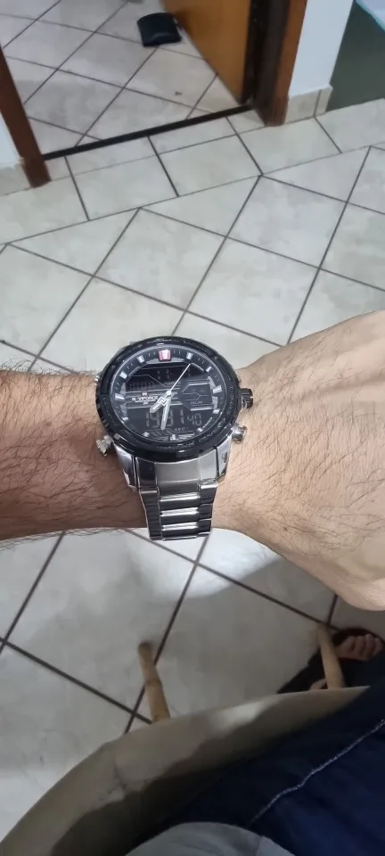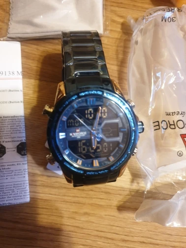 Product exactly as described in the ad, I am imprecated with the quality and appearance of the watch, it is well robust and "heavy", personally it is even more beautiful than in the photos, I believe my father will like this gift very much.